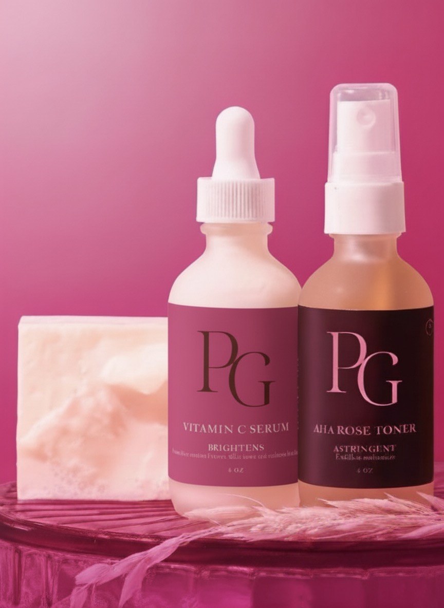 • Vitamin C Serum – Brightens, fades dark spots, and softens fine lines.
